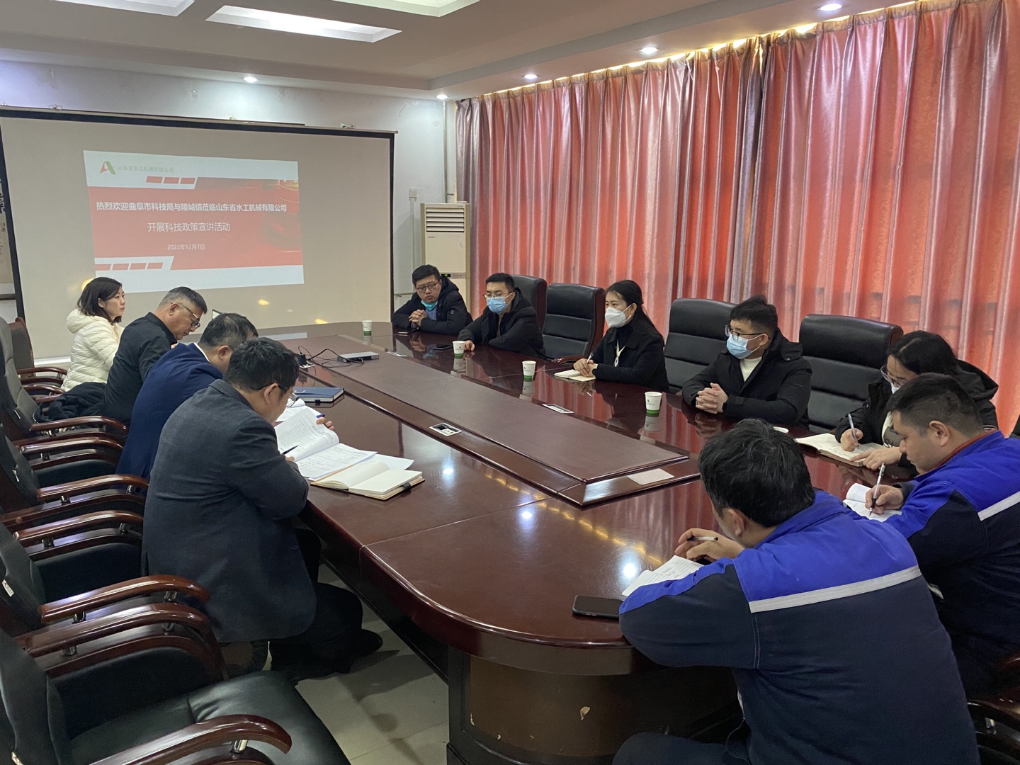 12月8日上午,曲阜市科学技术局党组书记王文涵、高新科科长高文龙以及陵城镇经济发展办公室一行到水工机械华体会平台开展科技政策宣讲会。