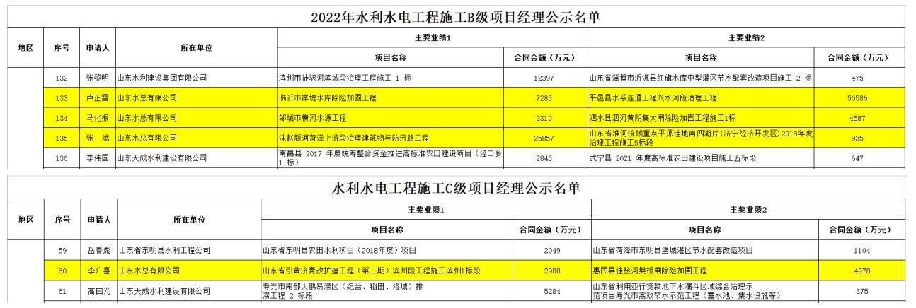近日,中国水利企业协会发布《2022年华体会(中国)一站式服务平台施工项目经理评价等级公示》,我华体会平台卢正雷、马化振、张斌三名同志被评为“2022年华体会(中国)一站式服务平台施工B级项目经理”,李广喜被评为“2022年华体会(中国)一站式服务平台施工C级项目经理”。