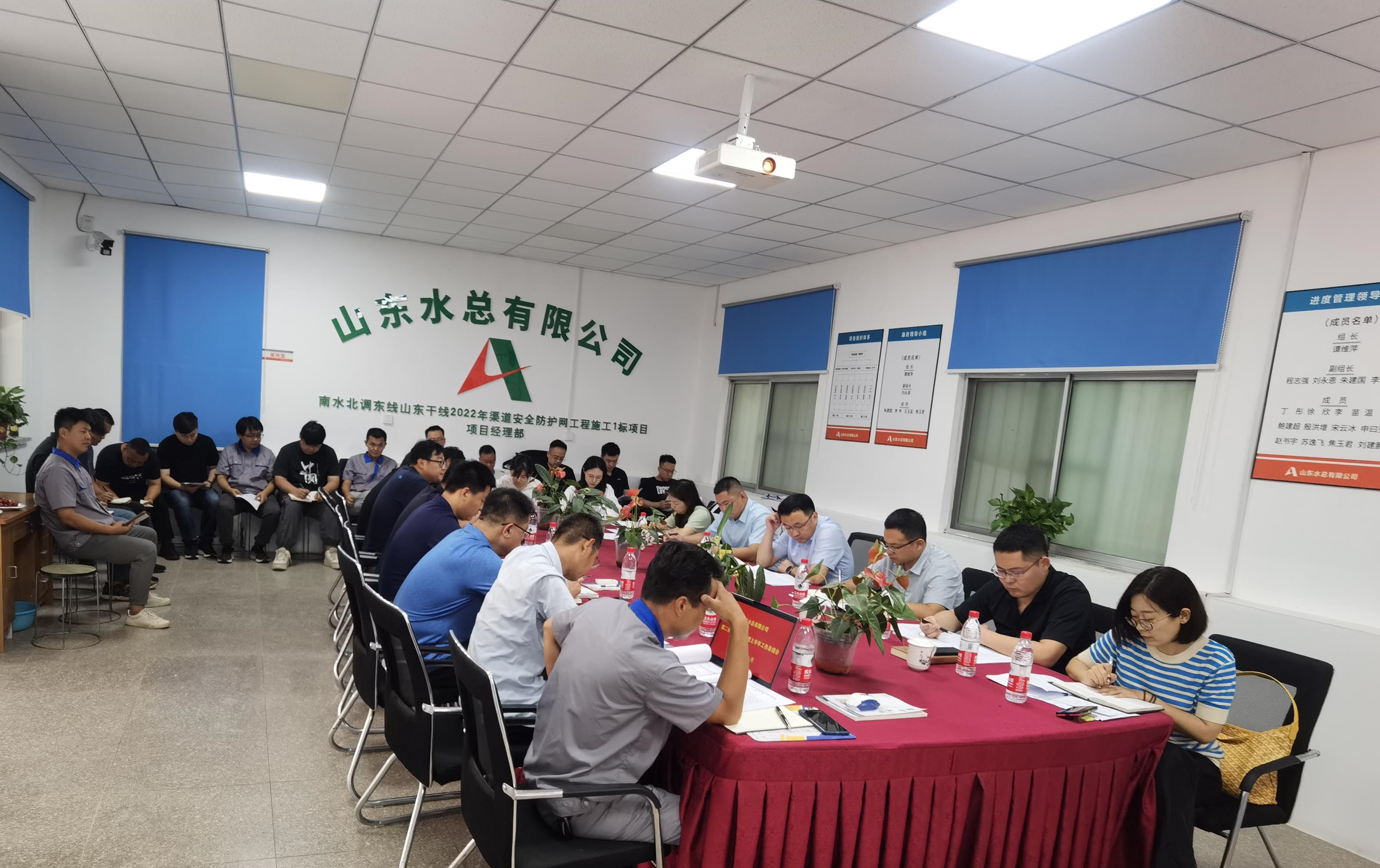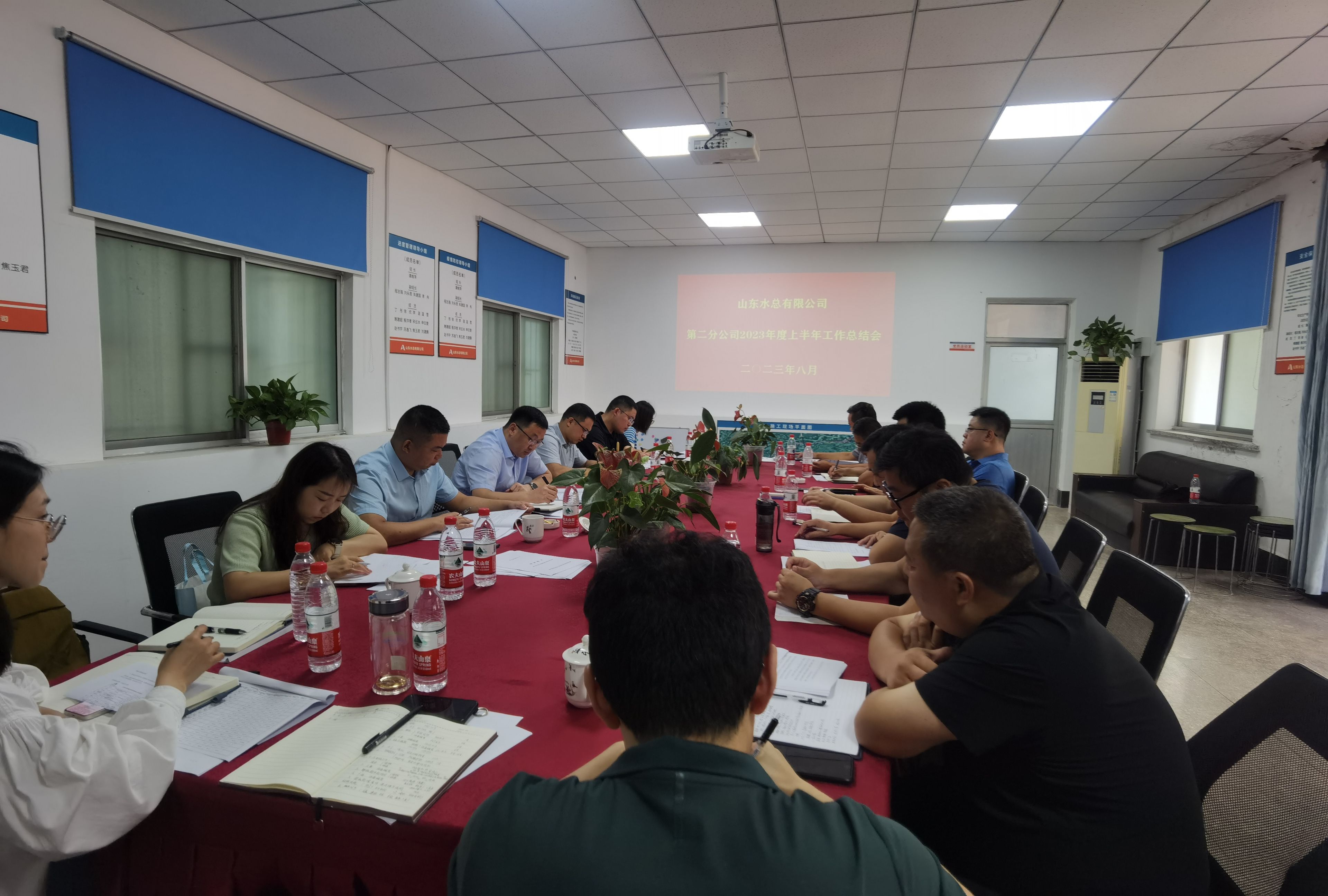8月13日,第二分华体会平台在南水北调山东干线2022年防护网工程项目部召开2023年度上半年工作会议,会议号召全体职工勠力同心,铆足干劲,锐意进取,为完成全年目标任务作出贡献。会议由分华体会平台副总经理郝振超主持,领导班子、各科室负责人、各项目负责人、各项目机料和劳务专员参加会议。