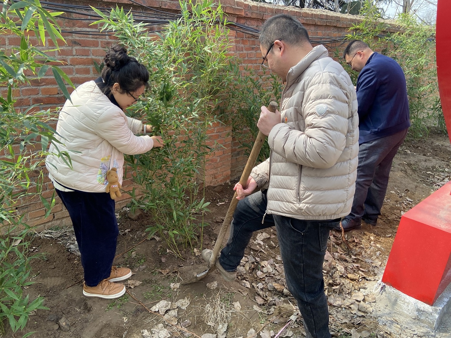 “党建红”引领“生态绿”,为践行绿色发展观,恰逢第46个植树节来临之际,3月11日上午,曲阜驻地党支部在文化长廊两边开展植树活动。