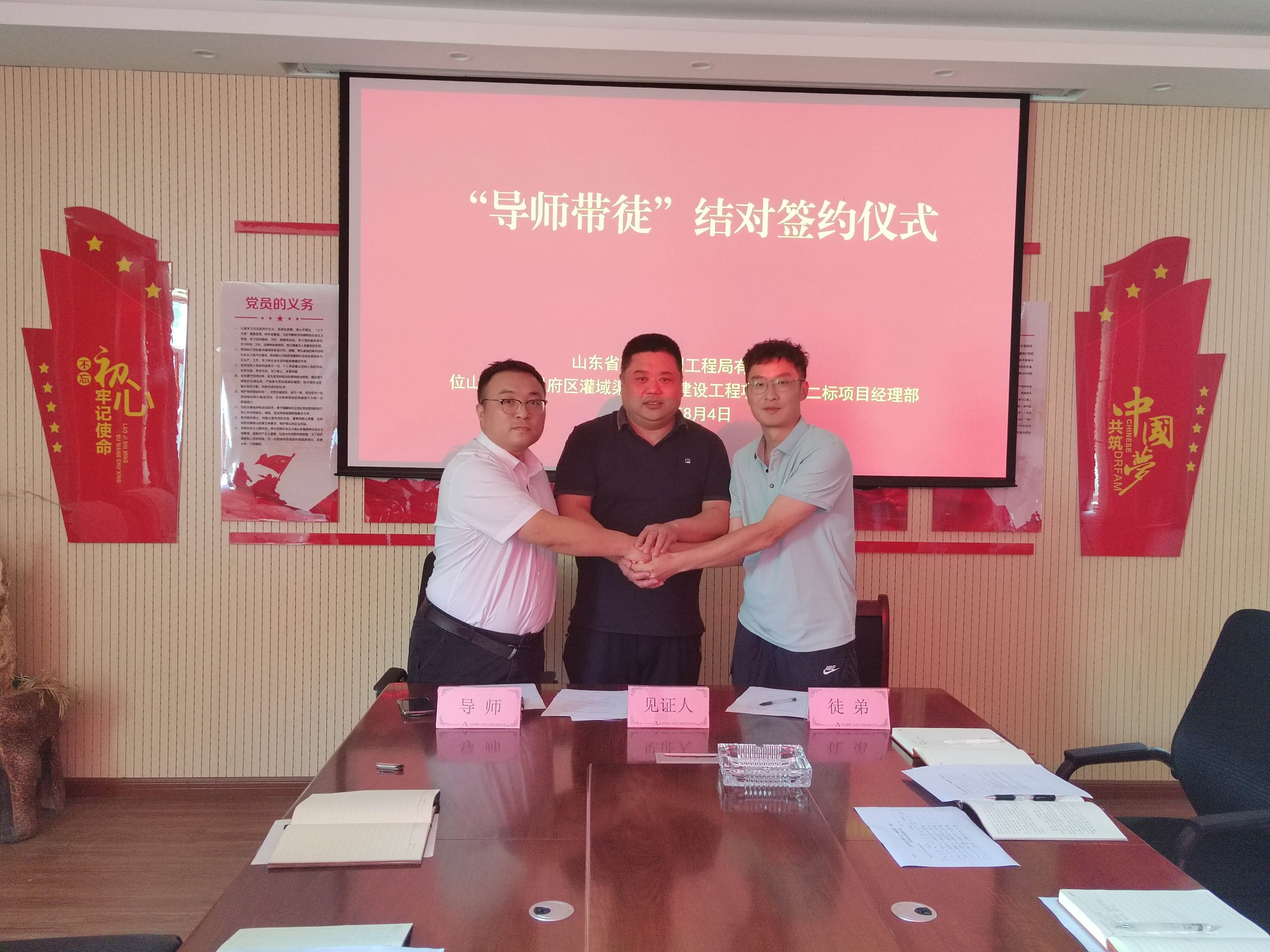 “师徒结对 薪火相继”- 二局有限华体会平台位山灌区项目部举行“导师带徒”结对签约仪式